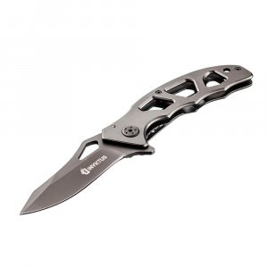 Lâmina em aço inoxidável 420,Lâmina de 3mm de espessura,Design sofisticado,Clip Tático,Acabamento: na cor cinza,